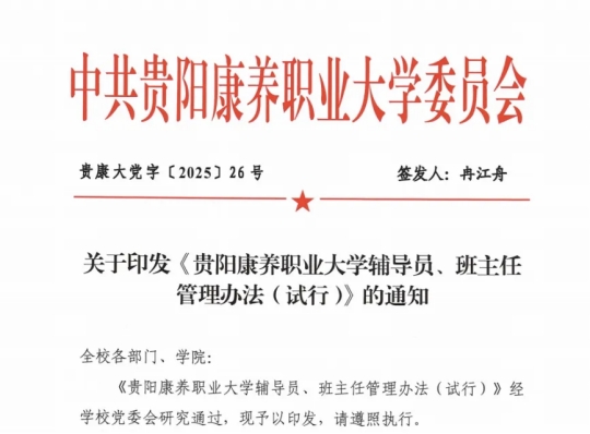 着力构建“大思政”格局,推动思政教育与专业教育、管理服务协同。扎实推进关工委工作,完成“读懂中国”活动选拔推送,优化关工委人员结构,筹备“五好关工委”创建。将思想政治教育融入日常管理与服务,通过修订《贵阳康养职业大学辅导员、班主任管理办法(试行)》,强化队伍专业化建设;在安全教育、宿舍文化、日常事务中渗透价值引导。在入学、军训、评优、毕业等关键环节强化仪式教育与榜样示范,推动社会主义核心价值观培育落细落实。