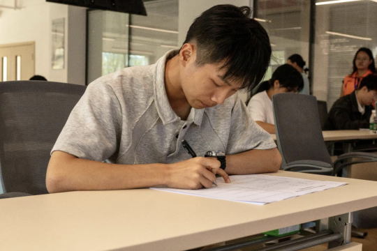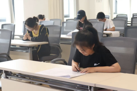 在法治素养竞赛上,选手们认真审题,或凝神思索、字斟句酌,或奋笔疾书、沉着应答,展现出他们对宪法条文的准确理解与法治精神的深入践行。整个笔试过程井然有序。