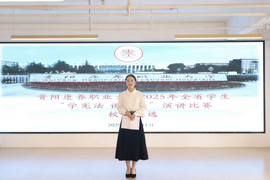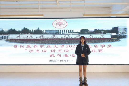 为深入贯彻落实《教育部办公厅关于举办第十届全国学生“学宪法讲宪法”活动的通知》(教政法厅函〔2025〕3号)、《省教育厅关于组织开展第十届全省学生“学宪法讲宪法”系列活动的通知》及《贵阳康养职业大学关于组织开展第十届学生“学宪法讲宪法”系列活动的通知》(贵康大校办通〔2025〕14号)精神,切实推进我校法治宣传教育,增强学生宪法意识和法治素养,10月11日,学校党委学工部在康铭学生社区致远厅开展了“学宪法,讲宪法”系列比赛。