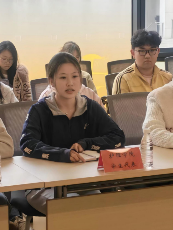 学生代表发言环节,各学院学生代表立足自身学习生活体验,围绕教育教学、学习生活等多个维度积极发言、建言献策。发言内容既涵盖教学改革、课程设置、实践实训等学业相关话题,也包括后勤服务、安全保卫、校园设施、餐饮保障等生活服务类问题,同时针对大学生心理健康咨询服务优化、图书馆资源利用与服务提升等特色需求提出了具体建议,充分体现了学子们对学校发展的高度关注和主人翁意识。